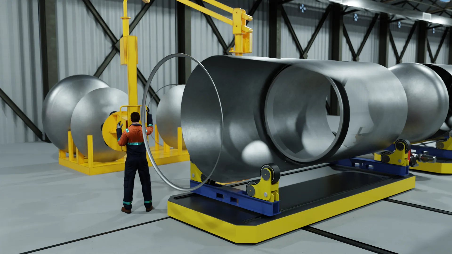 La fabricación de cascos de cisterna combina operaciones con alta exigencia dimensional y una fuerte dependencia del trabajo manual: refrentados precisos, posicionados, montaje de fondos y elementos internos, centrados y cierres circunferenciales, además de soldaduras internas complejas por accesibilidad y ergonomía.